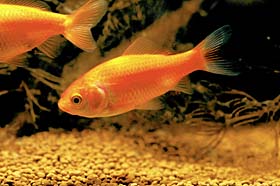 梅雨の終わり頃、金魚はいっせいにオスがメスを追いかけるようになり、メスはそれに刺激され水草などに産卵を始めます。このときオスはメスに群がり放精し、卵が受精します。受精後3〜4日後には稚魚が誕生します。
