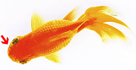 直径数ミリのウオジラミの寄生によるものです。金魚の体に張り付いて、口部分の針を刺し、体液を吸います。ほかの水槽から持ち込まれた魚や水草からの侵入によるものがほとんどです。