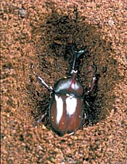 カブトムシは卵から成虫になるまで1年間で、成虫になると交尾をして産卵して死んでしまいます。カブトムシを飼育して、成長する様子を観察してみるといいでしょう。さなぎになったのを確認したら、観察しやすいようにカブトムシ用に土などで、さなぎが入るくぼみ(蛹室)をつくって、さなぎに直接さわらないように、スプーンなどでそのくぼみに入れましょう。上から黒い紙をかぶせれば、ときどきさなぎの様子を観察することができます。気づいたことがあれば記録しておくといいでしょう。