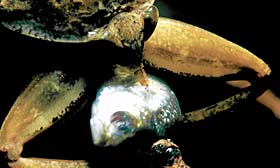 昆虫の仲間は、大きくわけると、肉食と草食にわかれます。肉食と草食といっても、それぞれの昆虫によって、頭からバリバリと食べてしまうものや、体液を吸うものなど、いろいろです。草食でも、実を食べるものや葉を食べるもの、蜜を吸うもの、樹液を吸うものなど、さまざまです。その食べ物によって口の形も変化し、それぞれの食べ物が食べやすい形になっています。どんな昆虫がどんな食べ物を食べて、どんな口の形をしているのか、観察してみるといいでしょう。