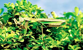 えさをつかまえるオオカマキリ
