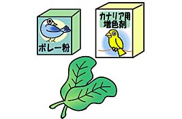 エサは、フィンチ用の配合飼料やボレー粉を与えます。ほかにもコマツナなどの青菜を毎日与えましょう。また、アカカナリアなどには、色を美しくするために、増色剤も与えます。