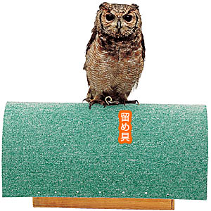 フクロウは、ケージで飼うよりも、足輪をつけて、台座で飼うようにします。台座は、重い木材やブロックなどに、つかまりやすいように、カーペットやタオルなどを巻いて作りましょう。真ん中にヒートンなどを付けて留め具にします。