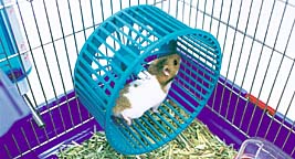 ハムスターの運動不足解消のために、回し車をセットしましょう。回し車を使わないハムスターもいますが、しばらくすると遊ぶようになります。