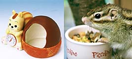 シマリスがかじっても、こわれない、ステンレス製や陶器製のじょうぶな食器を選びましょう。また、ステンレス製のものは、ケージに固定できるものがいいでしょう。