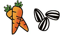 小鳥のエサのあわ玉や小粒のヒマワリの種を与えましょう。ときどき、水分を含んだニンジンなども与えましょう。
