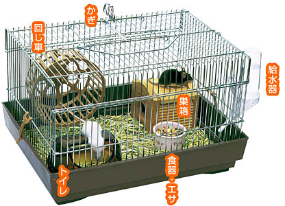 ハムスター用のケージで飼育しましょう。また、水そうやプラスチックケースでも飼うことができます。