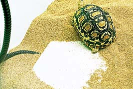 寒さに弱いので、夏以外は、ヒーターをセットしましょう。小動物用のパネルヒーターが便利です。床材に埋めておきます。