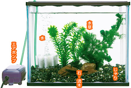 きれいな水を維持するために、エアポンプとフィルターを使いましょう。