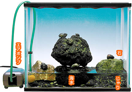海水を使うので、水そうを選びましょう。小さな生き物なので、30〜45センチの水そうでじゅうぶんです。