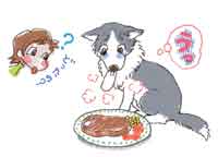 犬は肉食動物であると思われがちだが、実際には、肉食傾向のある雑食動物である。人間に長く飼われているうちに、内臓に変化が起きてきたのだ。猫は、腸が短く、高たんぱく、高カロリーの食事を摂取することで腸で栄養が吸収されるが、犬は、腸が長いので、高たんぱく、高カロリーの食事をとると、栄養価が高くなりすぎて、肥満の原因になってしまう。そのため、肉をメインにした栄養価の高いものを与えると、病気になる可能性が大きい。