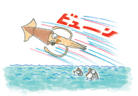 トビイカは、大きな船や敵に襲われそうになると、水をジェット噴射して、約40メートル、空中を滑空して危険を回避する。