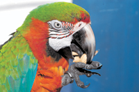 オウム類の嘴は、硬い木の実を砕く破壊力がある。先がするどくとがっており、人間の指を力いっぱいかじれば、骨折させてしまう。ペットショップや動物園などで止り木にとまっているオウムに、軽々しく指を出すのは危険行為なのだ。