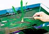 6. ピンセットでつまんで水草を砂利に植え込みます。 |