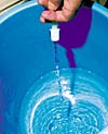 汚れた水槽の水は、バケツに入れて、掃除に使います。 |