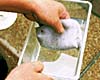 クリーナーで底砂にたまった汚れを吸い取ります。 |