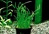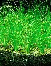 ヘアーグラスが普及するまでは、前景用の代表種でした。ランナーでよく増え、特に砂に窒素分が採った古い水槽では、一気に増えることがよくあります。植えかえに弱いので、根もとは動かさないのが栽培のコツです。 |