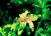 新芽がバラ色に染まり、白い模様が入る、大変派手な種類です。ハイグロフィラの人工品種だといわれています。基本的には非常に丈夫ですが、環境が整わないと、せっかくの模様が現れません。 |