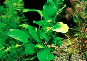 大型水槽用の水草と、いっていいくらい大型の水草です。丈夫で太く、長く、大きくなります。初心者でも比較的扱いやすいので、大きく野性的な背景が表現できます。 |